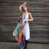 Crafted from a premium silk/modal blend, this lightweight designer scarf offers endless styling options: wear it as a neck scarf, a head wrap, or draped as a shawl. Its elegant drape and bold design make it ideal for customers who value timeless fashion and unique art.